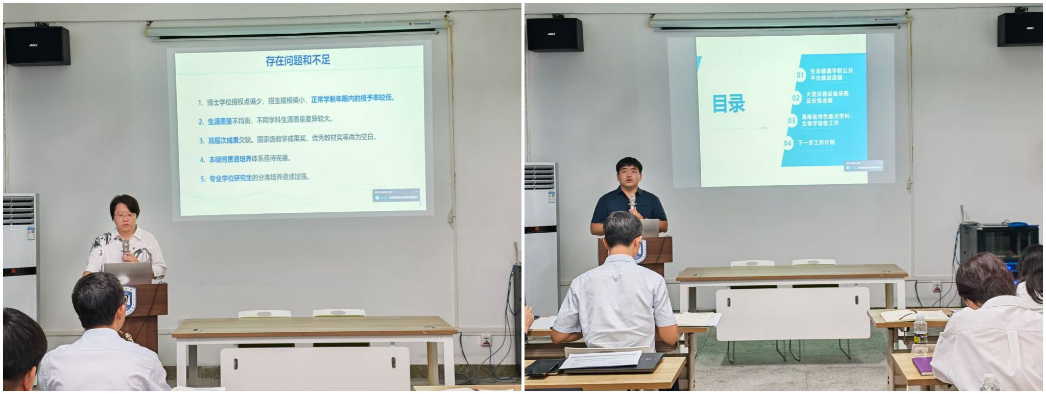 刘征副院长通报了生命健康学院公共平台建设、大型仪器设备采购安装的阶段性成果,海南省特色重点学科-生物学的验收工作,为学科发展筑牢硬件支撑。