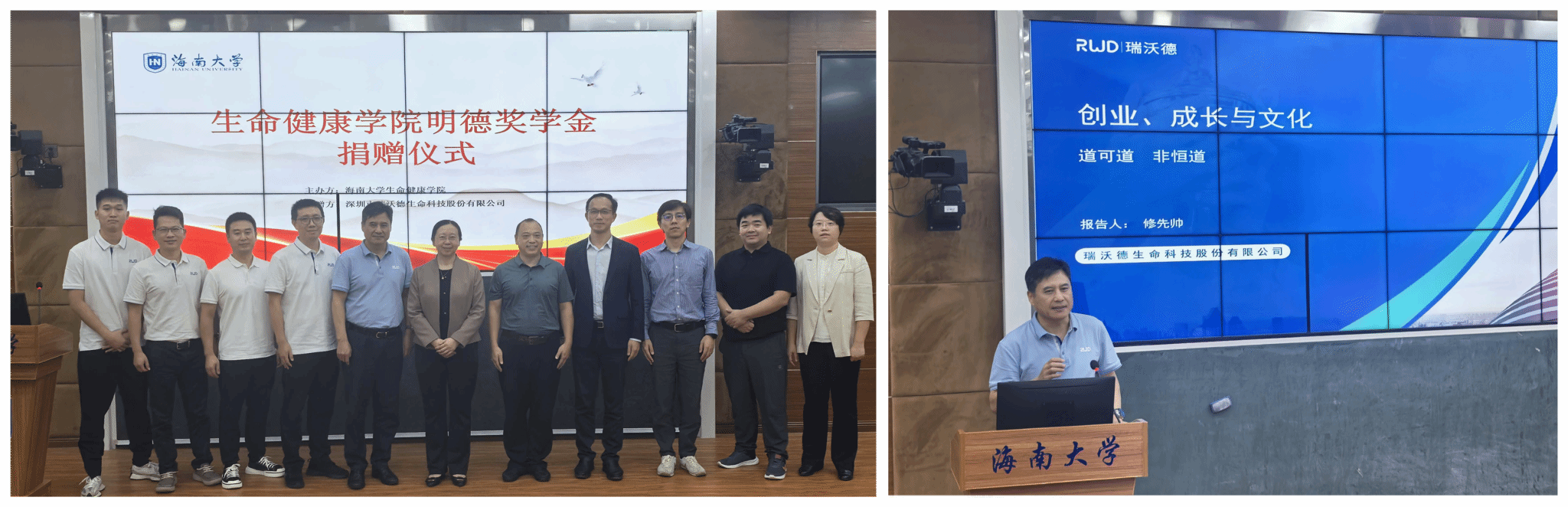 修先帅总经理在致辞时指出,瑞沃德坚持“质量 诚信 责任 奋斗”的核心价值观,在生命科学、动物健康及临床医疗领域不断深耕,此次捐赠是企业支持人才培养和科研的“回报”之举。接着,修先帅总经理作了题为“创业、成长与文化”的讲座,结合自身经历、分享人生洞察,获得在场听众的热烈掌声,并耐心解答了现场师生关于职业规划、行业趋势等方面的问题,启迪了青年的认知和发展。