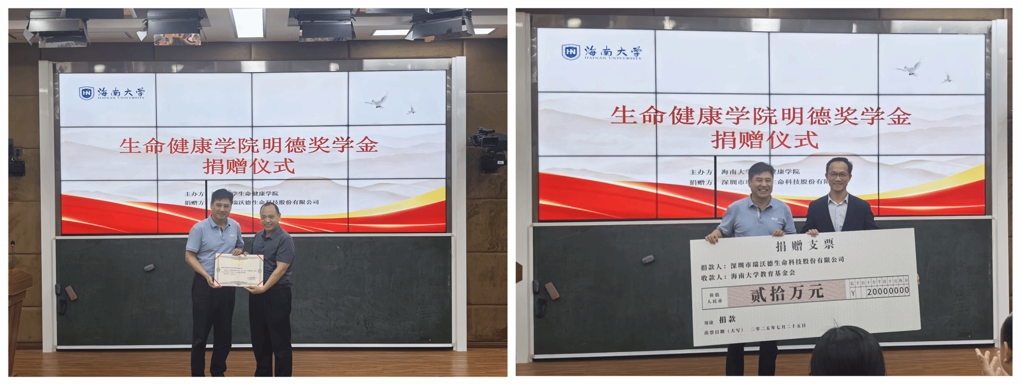 凌雪冰书记对修先帅总经理一行表示热烈欢迎和诚挚感谢。他介绍了海南大学2018年以来取得的跨越式发展成效,以及我院在学校学科专业优化调整布局下新的发展定位。他指出,学院统筹资源设立明德奖学金,旨在激励研究生德才兼备、勤奋探索,促进生命健康领域拔尖创新人才培养,感谢瑞沃德作为首个捐赠企业,希望双方合作领域越来越宽、合作成果越来越多,在生命与健康赛道上携手稳健前行。