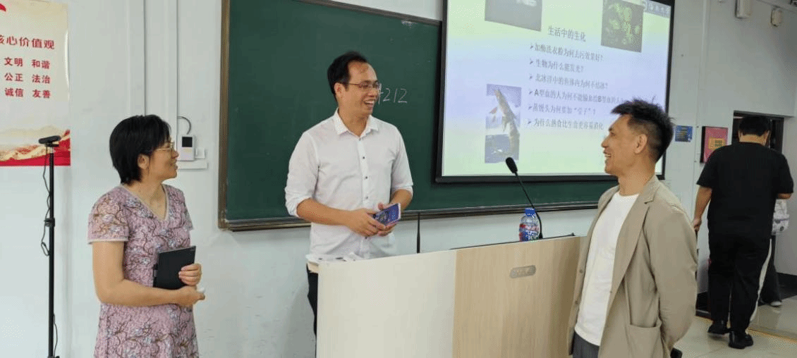 郑继平副院长、廖承红教授与授课教师岑举人副教授课后交流