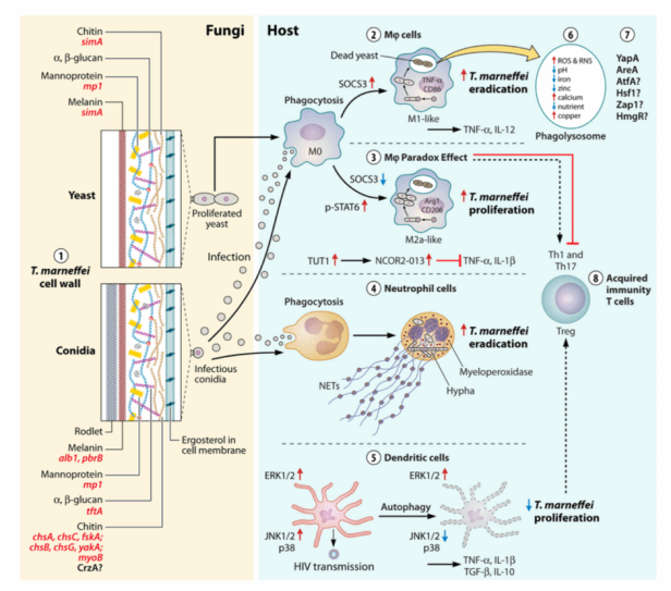 图3. 马尔尼菲篮状菌致病机制及与宿主互作