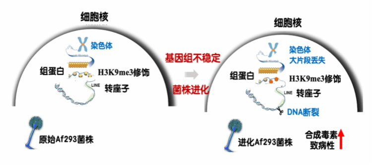 图2. 烟曲霉菌基因组不稳定性引起的菌株大片段染色体丢失进化