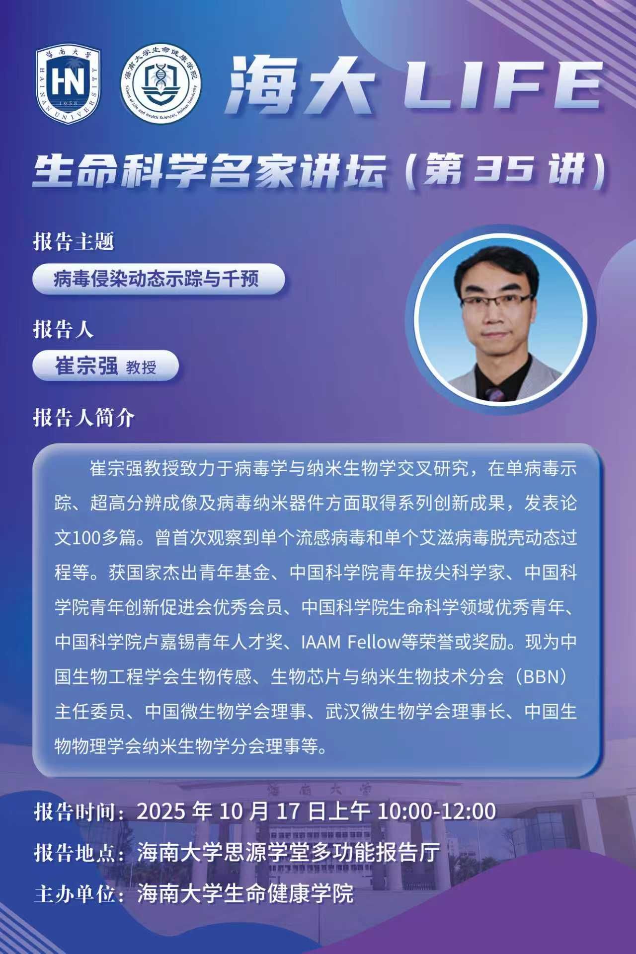 海大LIFE-生命科学名家讲坛(第35讲)| 崔宗强:病毒侵染动态示踪与干预