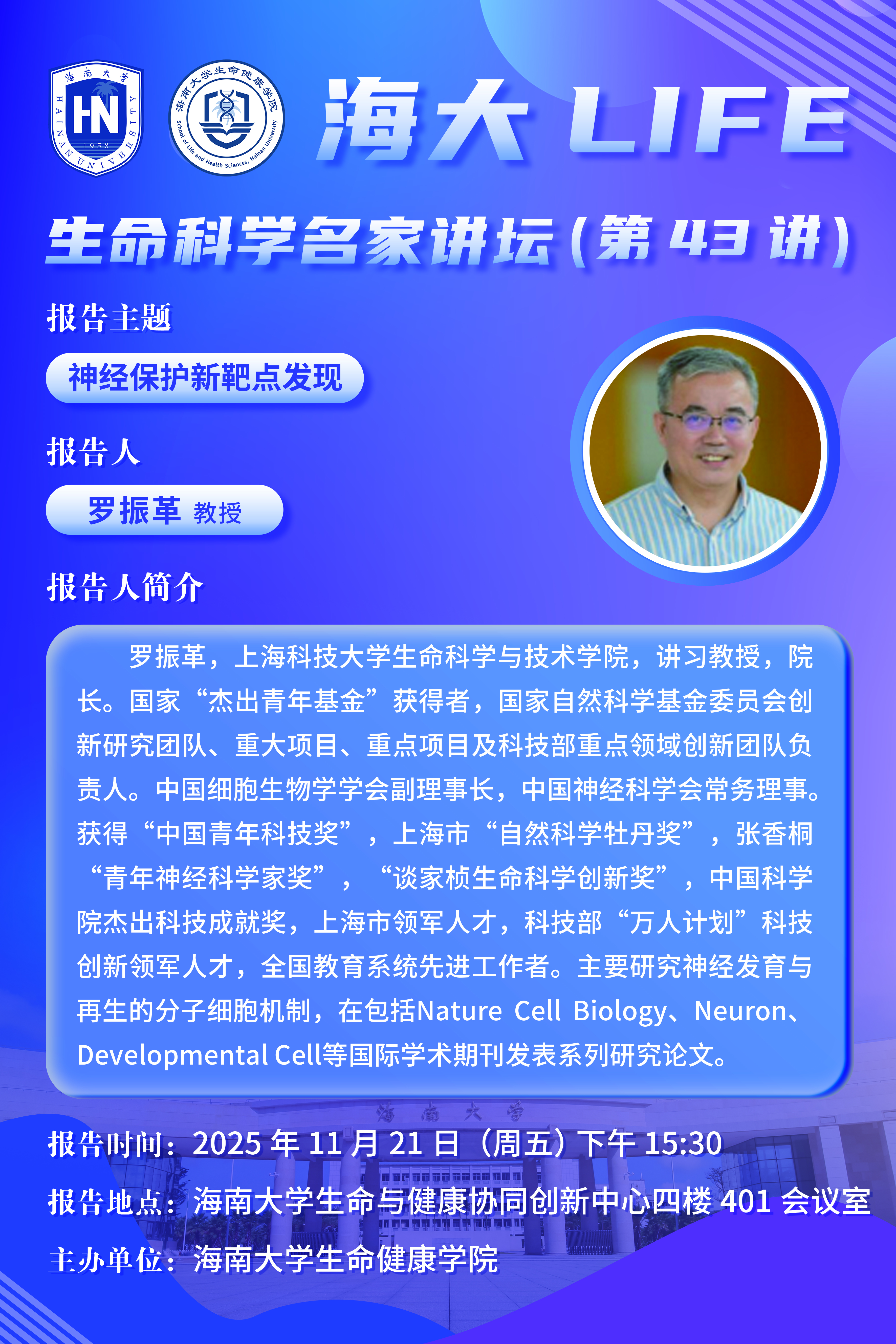 海大LIFE-生命科学名家讲坛(第43讲)| 罗振革:神经保护新靶点发现
