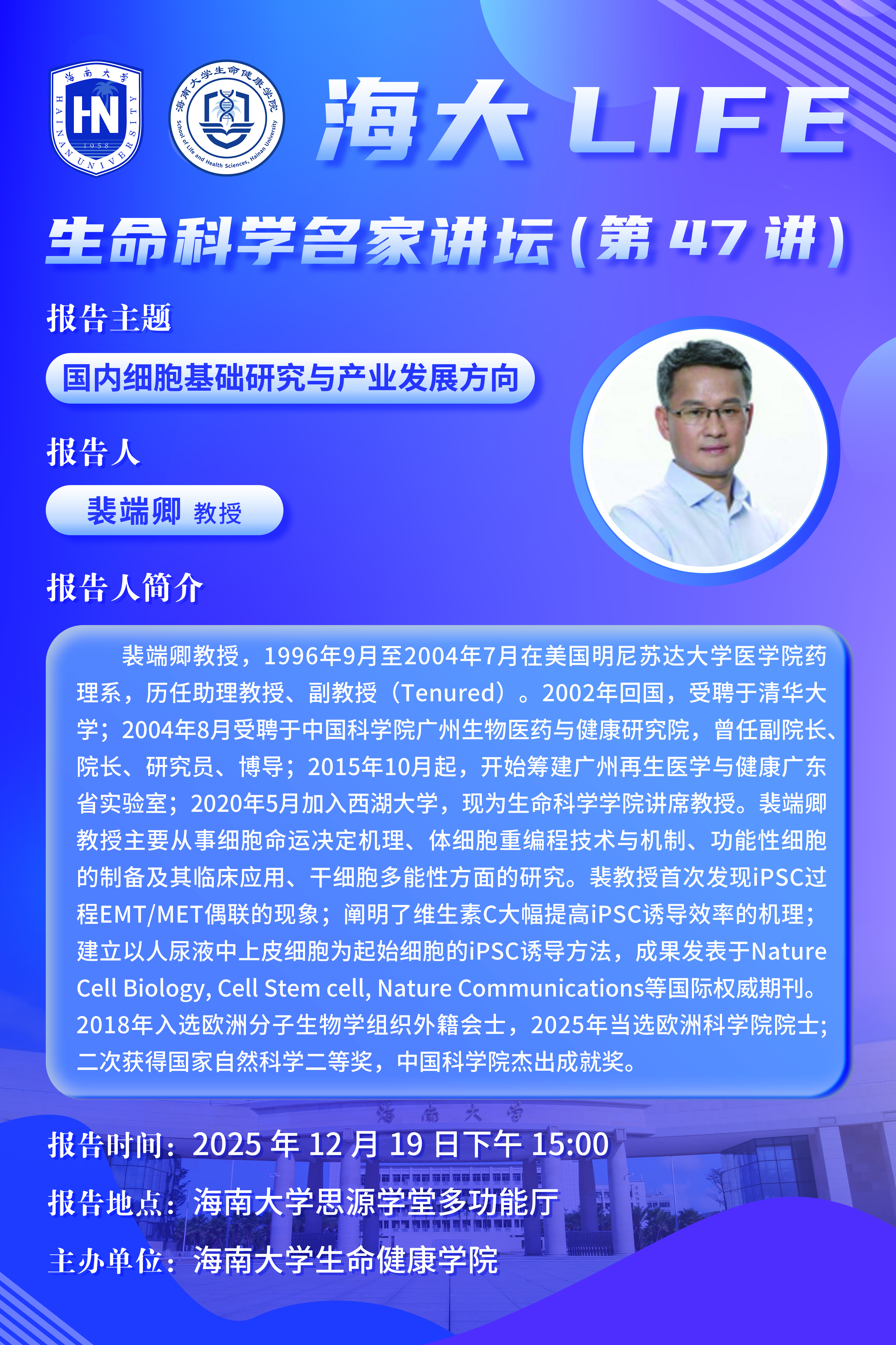 海大LIFE-生命科学名家讲坛(第47讲)| 裴端卿:国内细胞基础研究与产业发展方向
